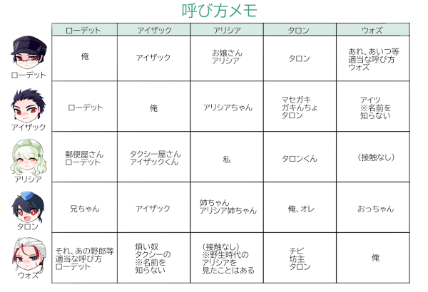 ウォズ/ローデット/タロン/アリシア/アイザック